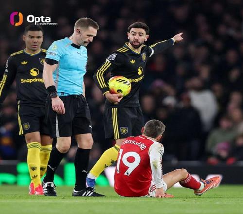 此役对阵阿森纳,布鲁诺-费尔南德斯助攻多古破门,至此,布鲁诺-费尔南德斯本赛季英超20次出场已送出10次助攻,上赛季,这位曼联队长在英超也送出10次助攻。