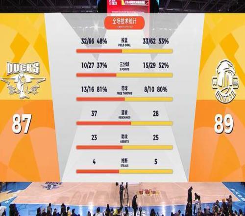 当然,北京队在第二节迎来了爆发,一点点把分差给追了回来。凭借单节打成33-17,半场战罢,北京队追到51-53。